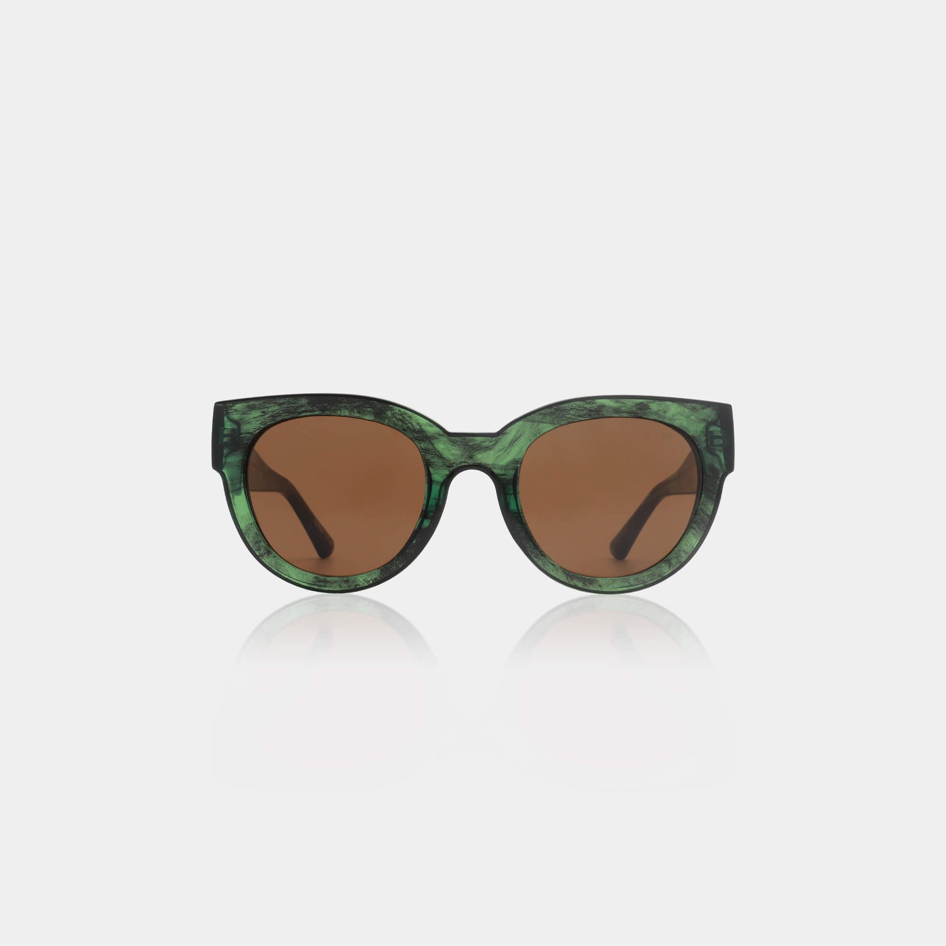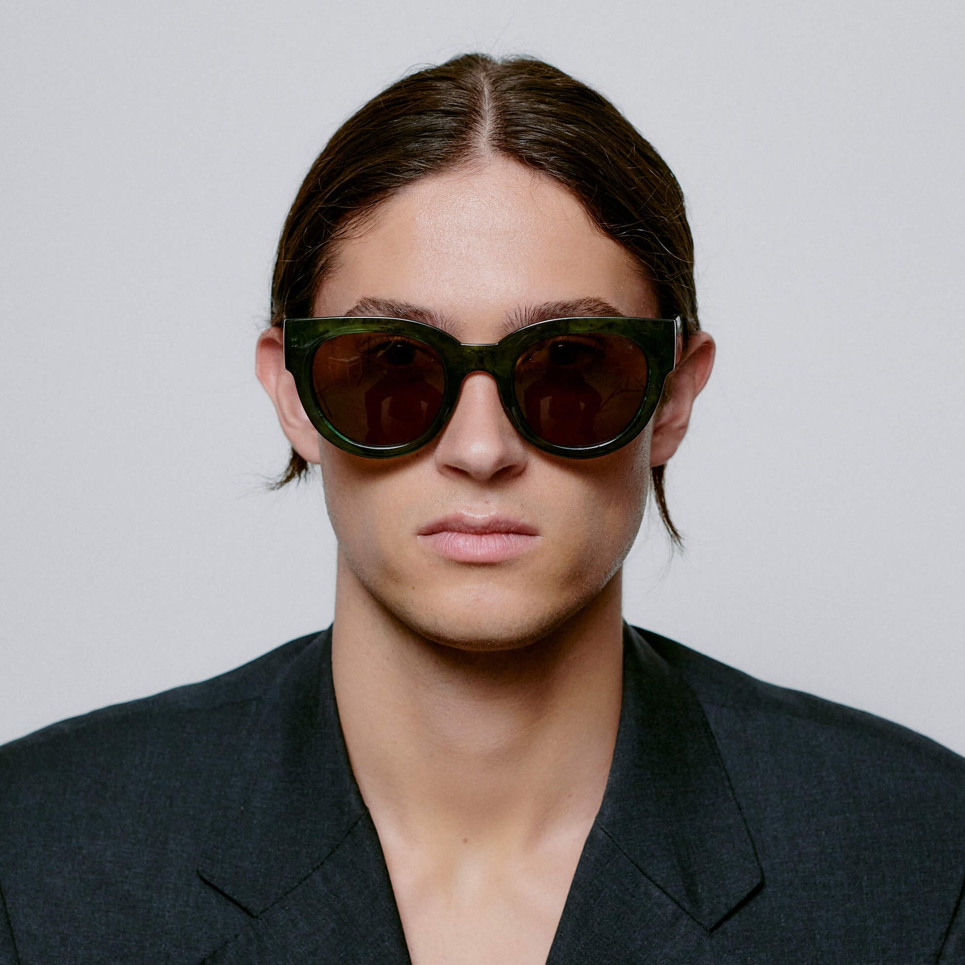 Enhance your style with the timeless elegance of A. Kjaerbede Lilly Round Sunglasses in Green Marble Transparent. These classic frames offer crisp edges, a large solid frame, and UV400 protection from harsh sunlight, with a grandiose look. Ideal for all ages and any gender, these luxurious sunglasses are sure to add a touch of extravagance to any outfit.