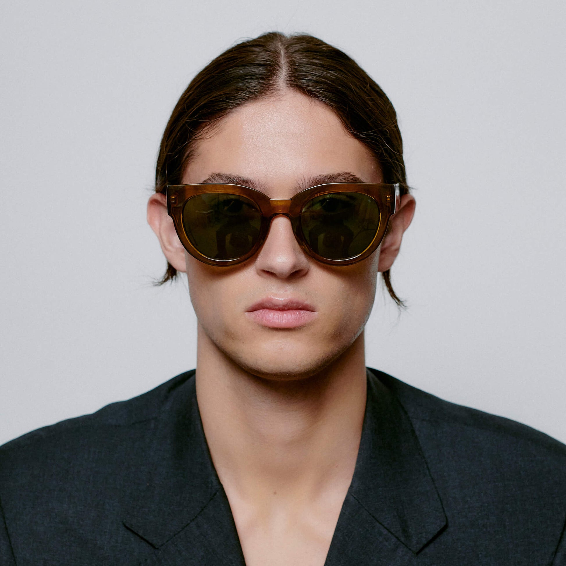 Enhance your style with the timeless elegance of A. Kjaerbede Lilly Round Sunglasses in Smoke Transparent. These classic frames offer crisp edges, a large solid frame, and UV400 protection from harsh sunlight, with a grandiose look. Ideal for all ages and any gender, these luxurious sunglasses are sure to add a touch of extravagance to any outfit.