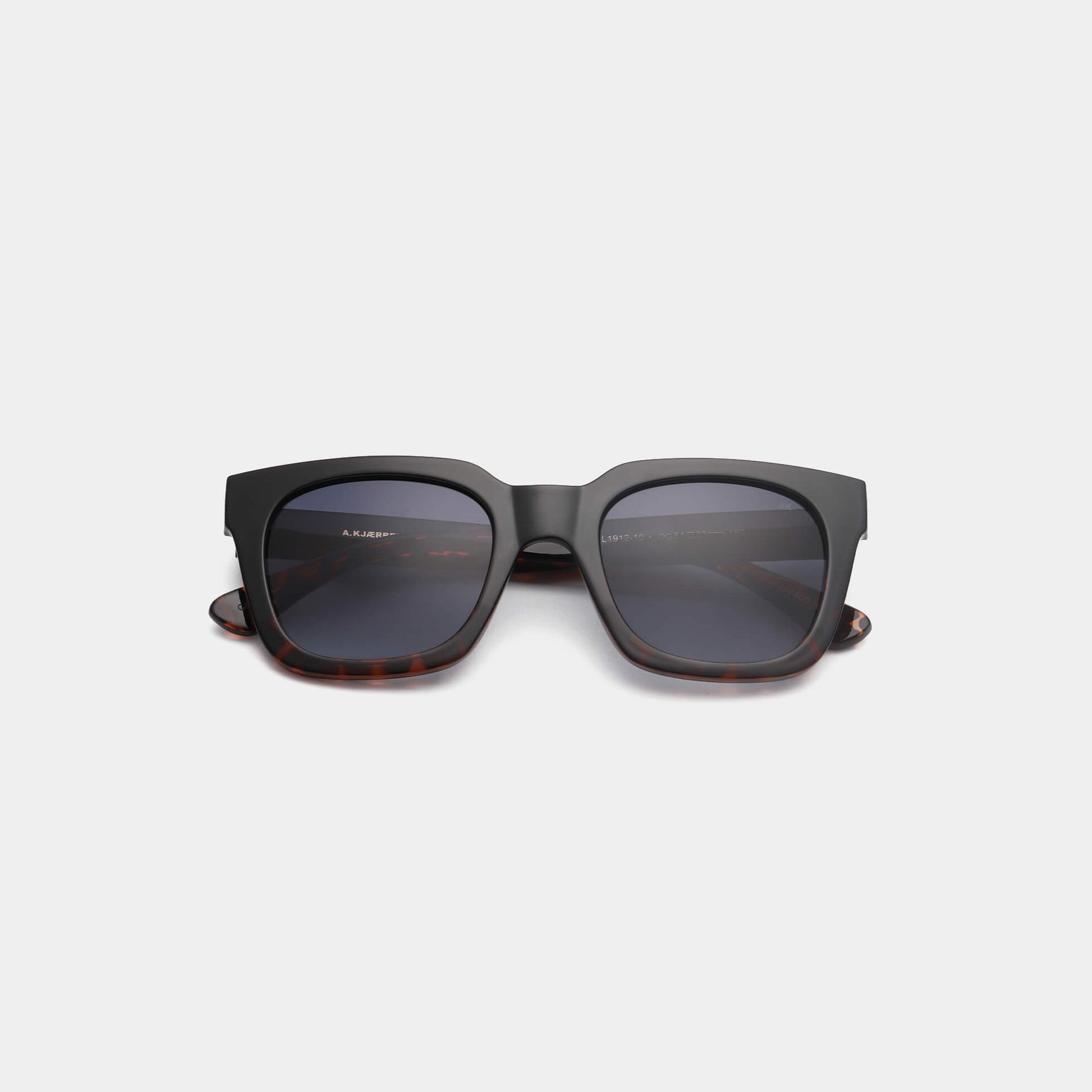 A. Kjaerbede's Trapezium Nancy Black Demi Tortoise Sunglasses are crafted for year-round durability and style. The classic and modern design features large, comfortable lenses, providing superior UV400 protection and an eye-catching look. Stand out in any crowd with this unique and elegant Black Demi Tortoise finish. Wear these timeless and exclusive unisex sunglasses season after season with confidence.