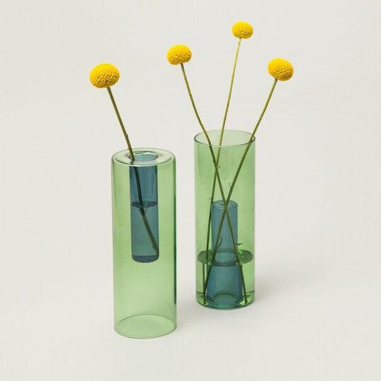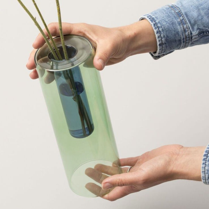In times where our nation is desperately trying to lessen our consumption of items, a reversible product that stands as a 2in1 is always going to be a winner and this reversible vase is without a doubt the perfect choice. The reversible glass vase in green and blue provides the ultimate vessel for both a bunch of flowers and a single bud. Whether it’s filled or empty, the geometric design looks amazing anywhere it’s placed. The dual-purpose vase also allows you to make the most of any bouquet - as stems begin to wilt, simply flip the vase and give pride of place to the remaining stems.