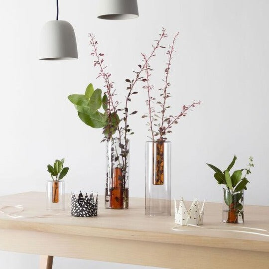 The Reversible Glass Vase is the perfect vessel for arranging your favourite florals, from a single bud to a full bouquet. Whether filled or empty, the versatile large glass vase is a beautiful geometric object. The dual-purpose vase allows you to make the most of your bouquet. As flowers start to fade, flip the vase and breathe new life into the remaining stems. Hand-crafted from borosilicate laboratory glass, the vases display clean geometric lines, complementing the natural florals within. Simply adding water creates a visual impact as the shapes within the vase interact. Two coloured glass vases in one, they’re designed to let your creativity flourish and make you fall in love with flowers again.