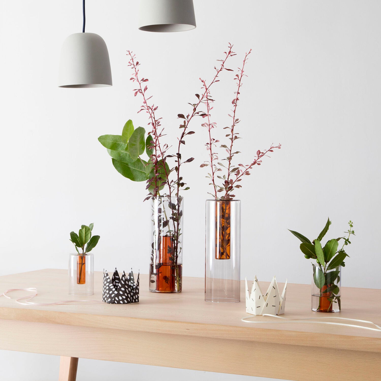 The Reversible Glass Vase is the perfect vessel for arranging your favourite florals, from a single bud to a full bouquet. Whether filled or empty, the versatile small glass vase is a beautiful geometric object. The dual-purpose vase allows you to make the most of your bouquet. As flowers start to fade, flip the vase and breathe new life into the remaining stems. Hand-crafted from borosilicate laboratory glass, the vases display clean geometric lines, complementing the natural florals within. Simply adding water creates a visual impact as the shapes within the vase interact. Two coloured glass vases in one, they’re designed to let your creativity flourish and make you fall in love with flowers again.