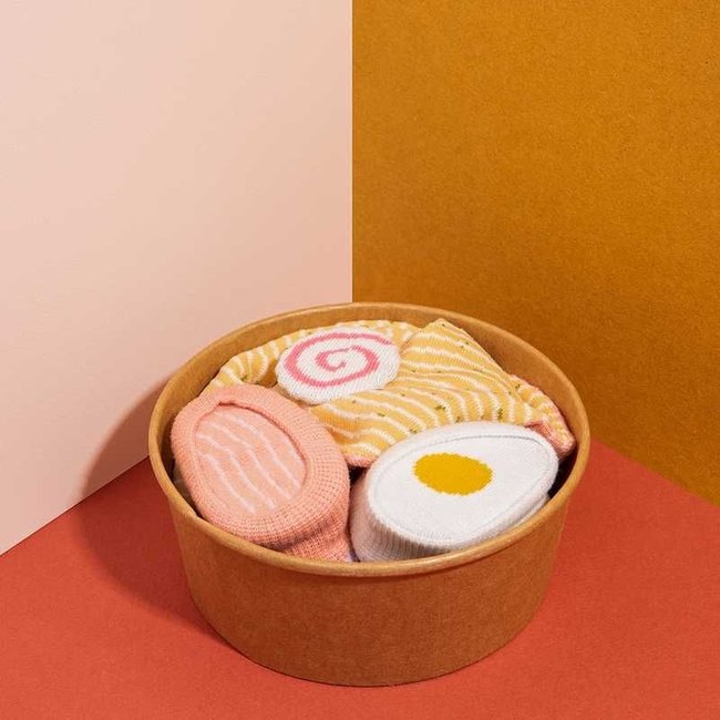 Nothing more cosy than a bowl of hot ramen. Inspired by the dish itself, these ramen socks come in a bowl shaped container with 2 pairs of socks inspired by the colours and patterns seen in a bowl of ramen.
