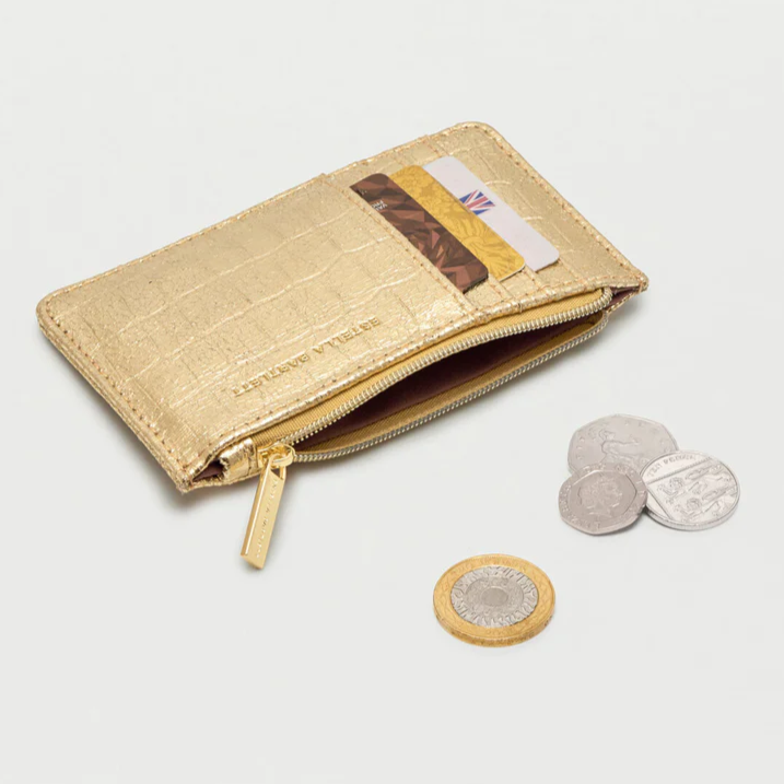 This glam crocodile-effect purse is exactly what you're looking for. Classy, sophisticated, and striking, this purse is golden for a reason. It has plenty of space for all of your coins and cards but is also small enough for your pocket.