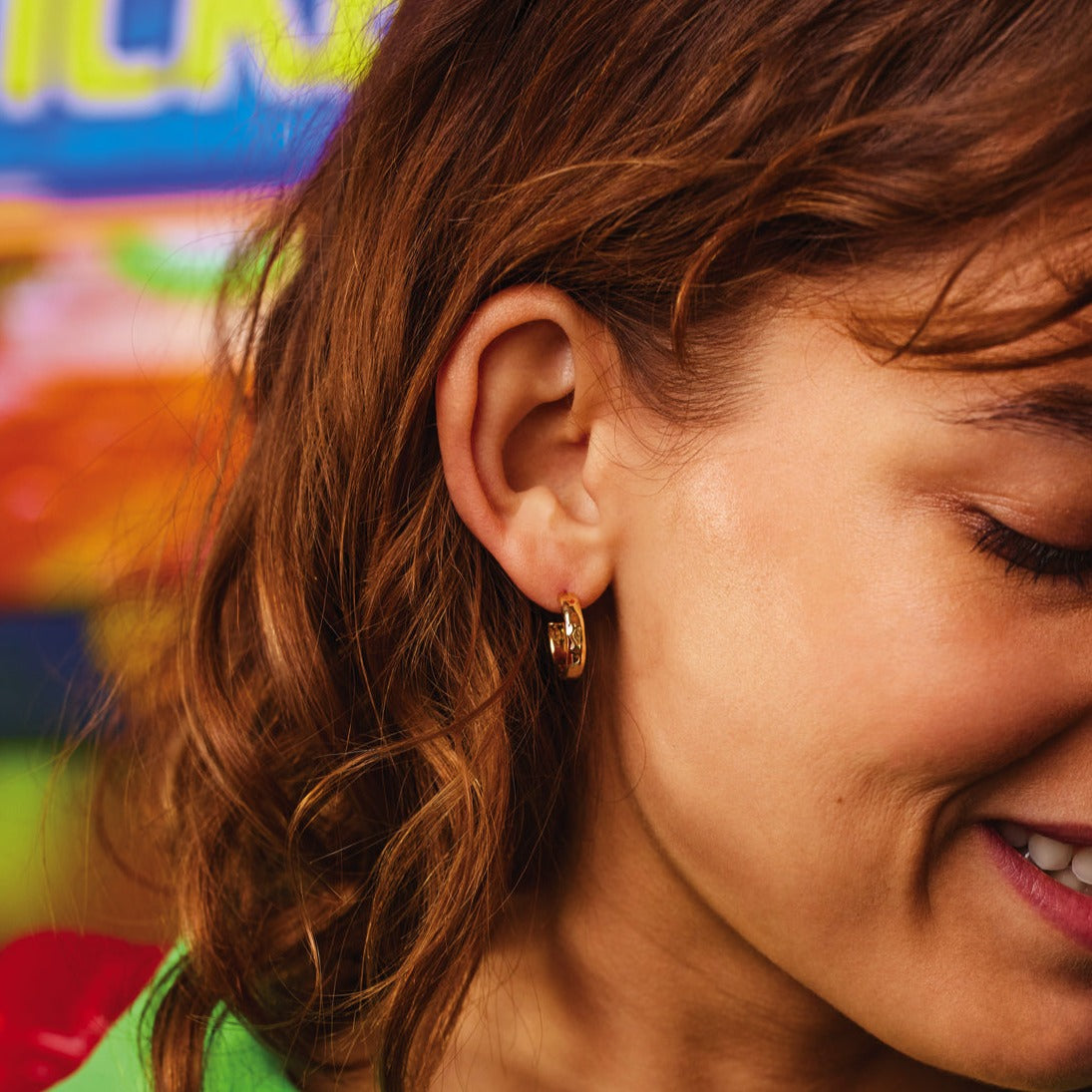 Our Textured Hoops have a classic look that'll never go out of style. Their slightly chunky design and textured surface make them the perfect accessory to style with huggies, cuffs and studs for a chic ear stack. Whether your outfit is for day or night, a hint of glam from these gold-plated hoops will shine through. This versatile piece will remain a staple in your wardrobe for years. Not to mention, you'll look and feel confident and modern with the warm, versatile tone of the gold plating. And the best part? It'll be easy to wear and care for- an ideal finishing touch! It won't just be a fashion statement - you'll also be able to enjoy lasting comfort and confidence. Our Textured Hoops come with lightweight construction and a secure closure, making them a comfortable wear throughout the day. And with no need to worry about maintenance, you can wear them for any occasion without a hassle. With their classic look and modern styling, this versatile piece will easily become a cherished part of your wardrobe.