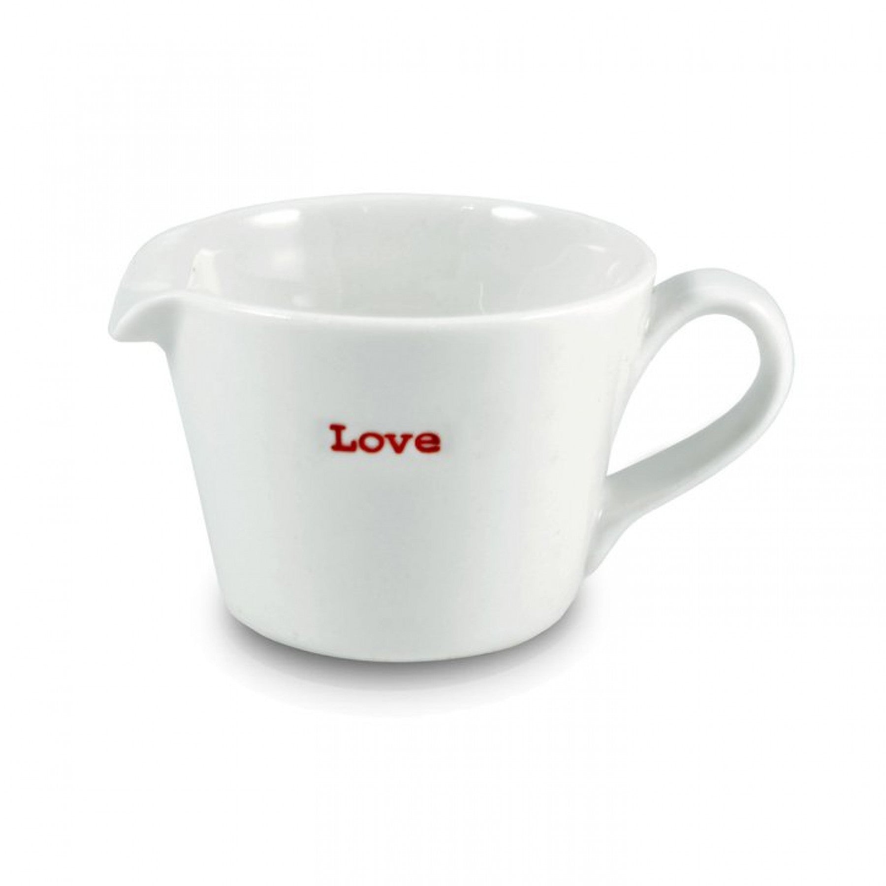 The original Keith Brymer Jones crafted small jug (50ml), with 'love' debossed by hand, by the skilled hand of a master craftsman, into the super white porcelain body. Part of the Keith Brymer Jones Word Range.