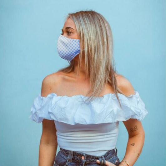 Adults face mask in the colour vichy blue. All face masks are produced using the best materials and fabrics, taking into account the recommendations of the World Health Organization. Their vast know-how has allowed Fisura to develop a solution that combines comfort with safety, protection and design. Three layers protection face mask: Outer layer with repellent finishing to make virus penetration difficult. Intermediate layer composed of an interlining that maintains an armed canopy to keep the mask shape for a better breathing. Interior layer with a repellent finish plus an antibacterial treatment to avoid virus hosting and proliferation.