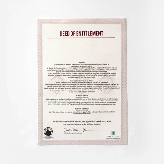 This novelty kit grants its recipient the title of Laird or Lady. By owning a souvenir plot of land within the grounds of the Dunans Castle in Argyll, Scotland, the recipient will be entitled to the decorative title of Laird or lady.
