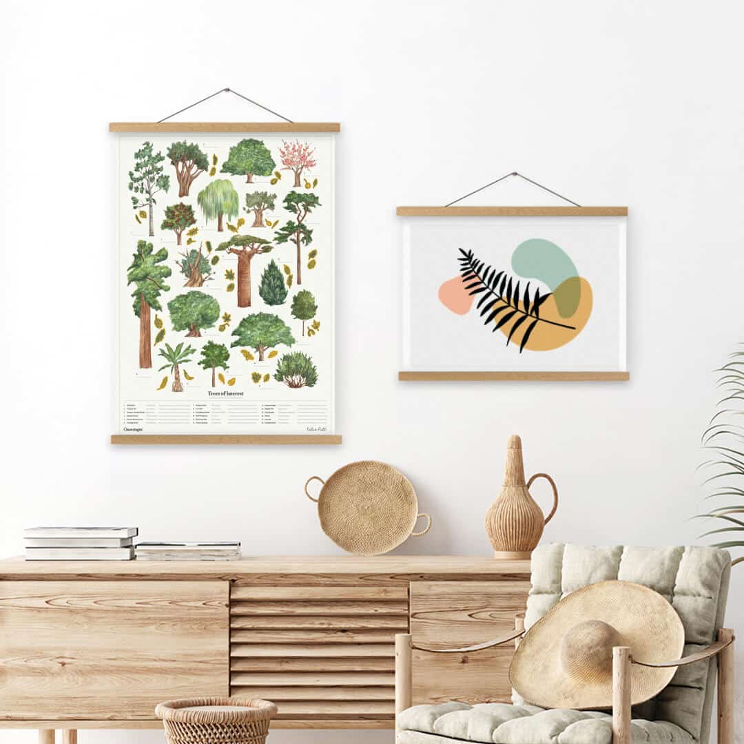 With only one nail/hook to put up, this cool oak hanger is an easy and clever way to hang posters and prints in any room. Simply clamp the print or poster with the magnetic strips and use the string to hang it - bosh! The poster hangers are made from responsibly sourced solid oak, you have confidence that your print or poster will stay exactly where it should.