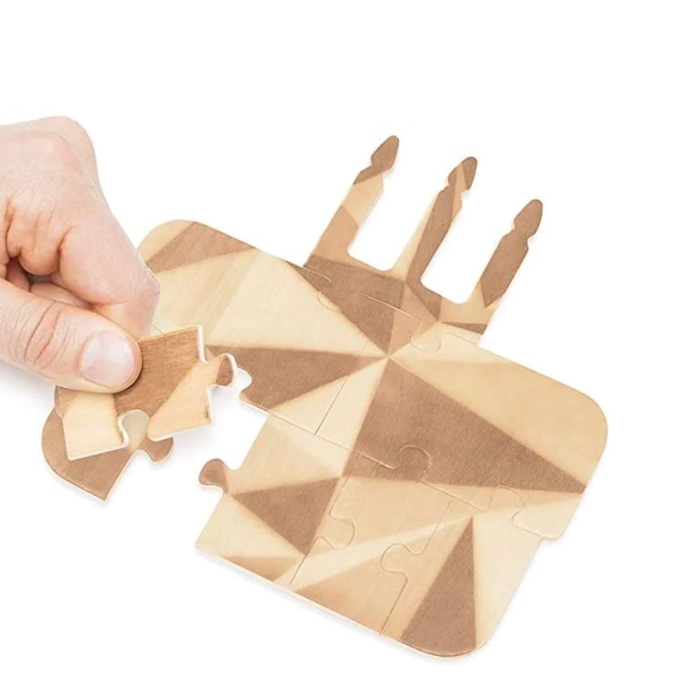Make this b'day extra special with a unique card! You Complete Me is a wooden jigsaw puzzle birthday card that looks like a birthday cake with candles. Write a personal message in the rear of the card, break it into 8 pieces, and return it to the box. Standard greeting cards can't compare. Your loved one will treasure this collectible wooden puzzle and it arrives in a stylish box, ready to gift. Give them something to puzzle over this year! They'll have a blast piecing the puzzle together while reminiscing on all the memories you've shared. The perfect way to show them how much you care.