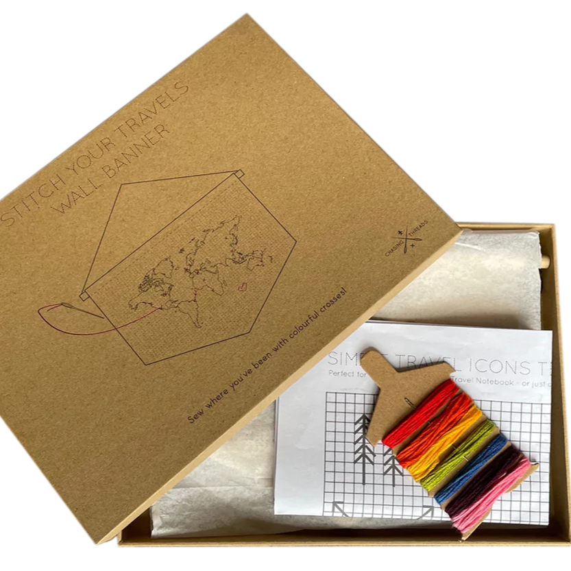Thread your way around the world with this stunning stitch travel wall banner.