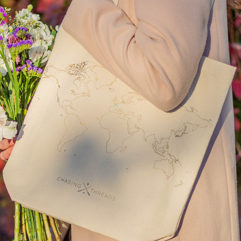 Chasing Threads - Tote Bag | Stitch Tote Bag | Natural Canvas Handles