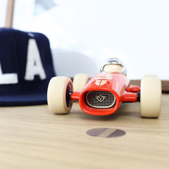 Ready, get set, go! Watch the ultimate toy racing car, created using inspiration from the early Maserati Formula 1 cars of the 20’s and 30’s. This beautifully crafted toy car however has enjoyed a modern spin on its appearance thanks to the famous Playforever, who’ve built this amazing car for speed. With a long and simplistic chassis, a long nose and a wide open grill, it’s super sleek and low to the ground for optimum streamlining. The awesome rubber tires in cream give it a real clean appearance, making it the ultimate collectors item.