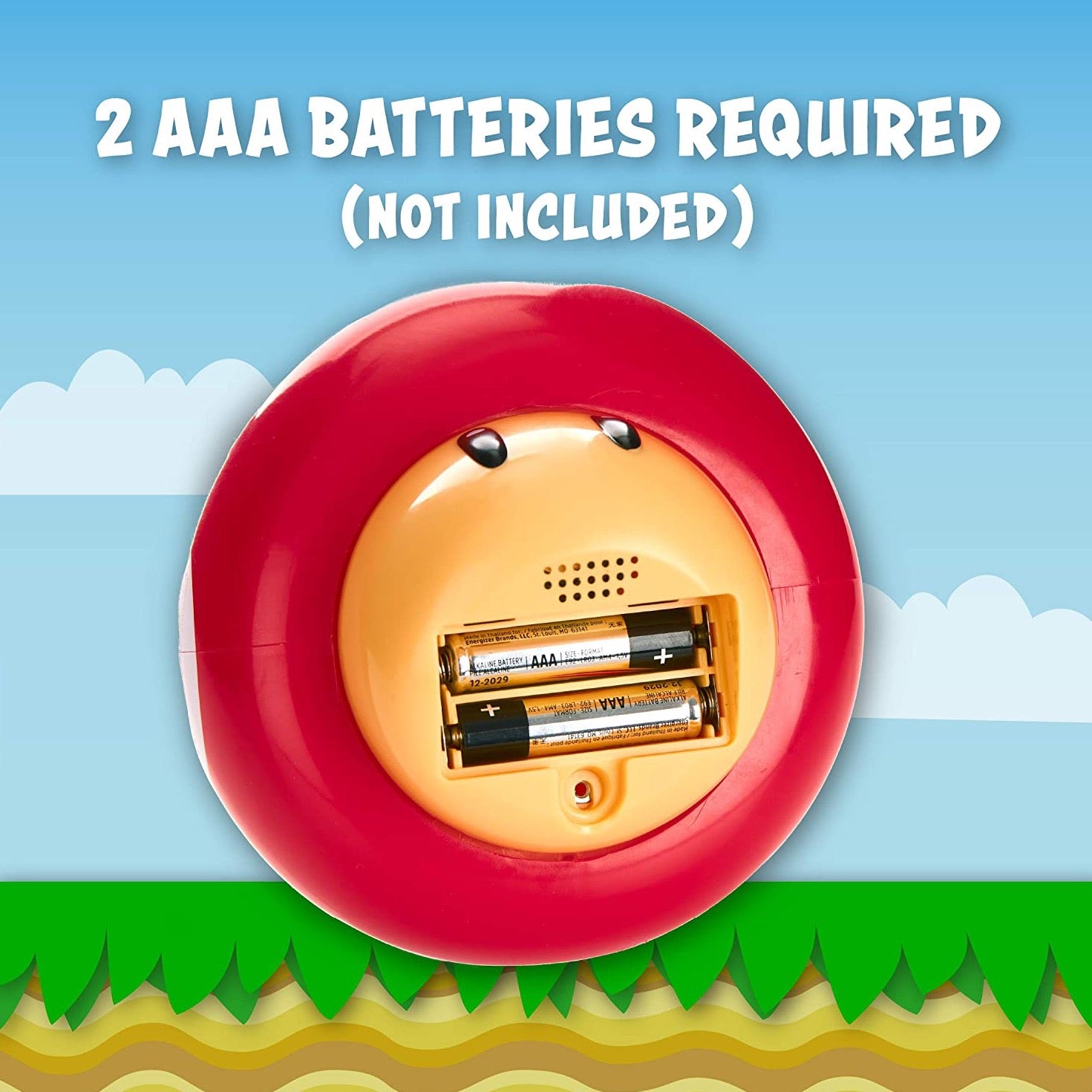 Description Size H12, W13, D13cm, Batteries required: 2 x AAA (not included), Suitable for age 6 years and over, touch style switch, plastic.