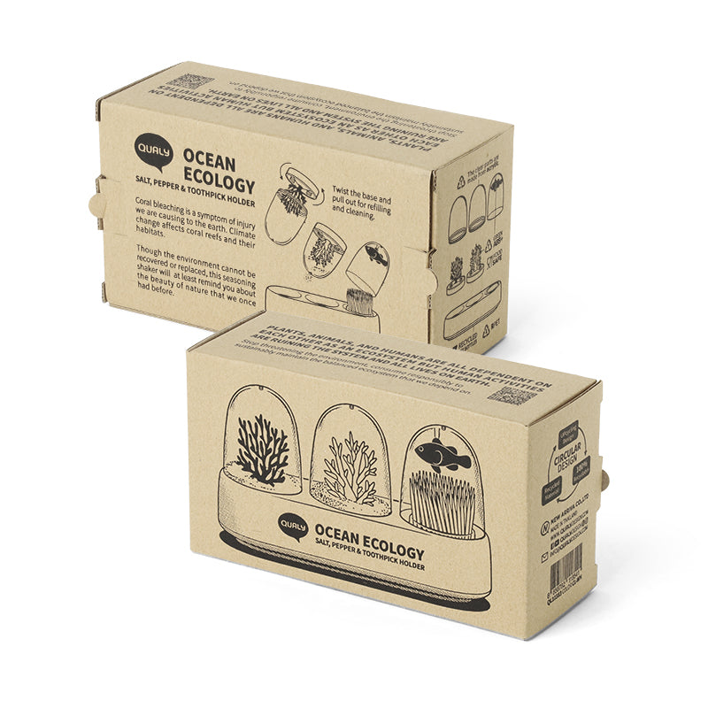 This adorable salt, pepper and toothpick holder set carries a very important message. Every time you use the set, it acts as a reminder of the power and value of the oceans. Qualy reminds us of the importance and beauty of the seas.