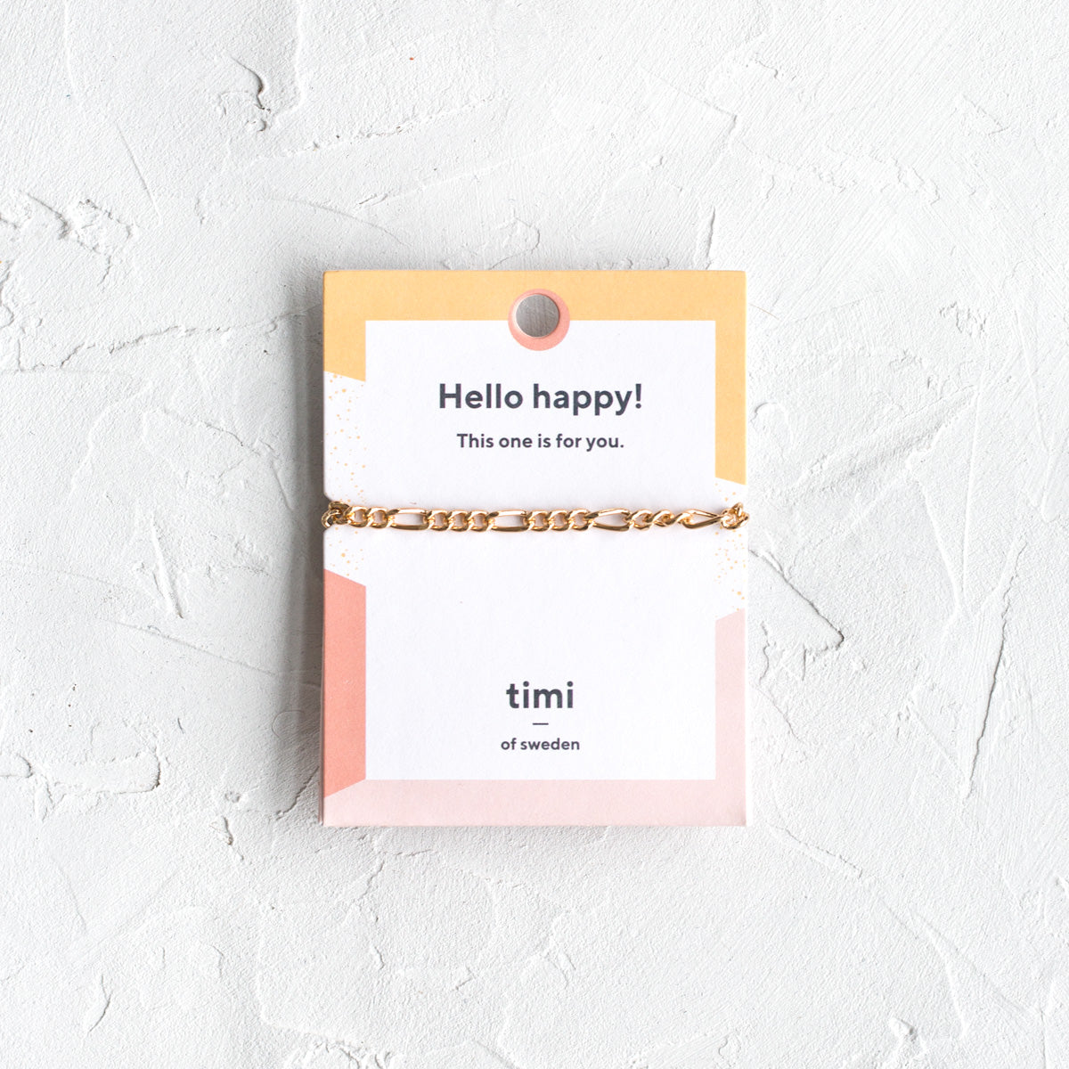 Description 17 cm with extender. Material: Brass-based with gold plating. 1x bracelet included.
