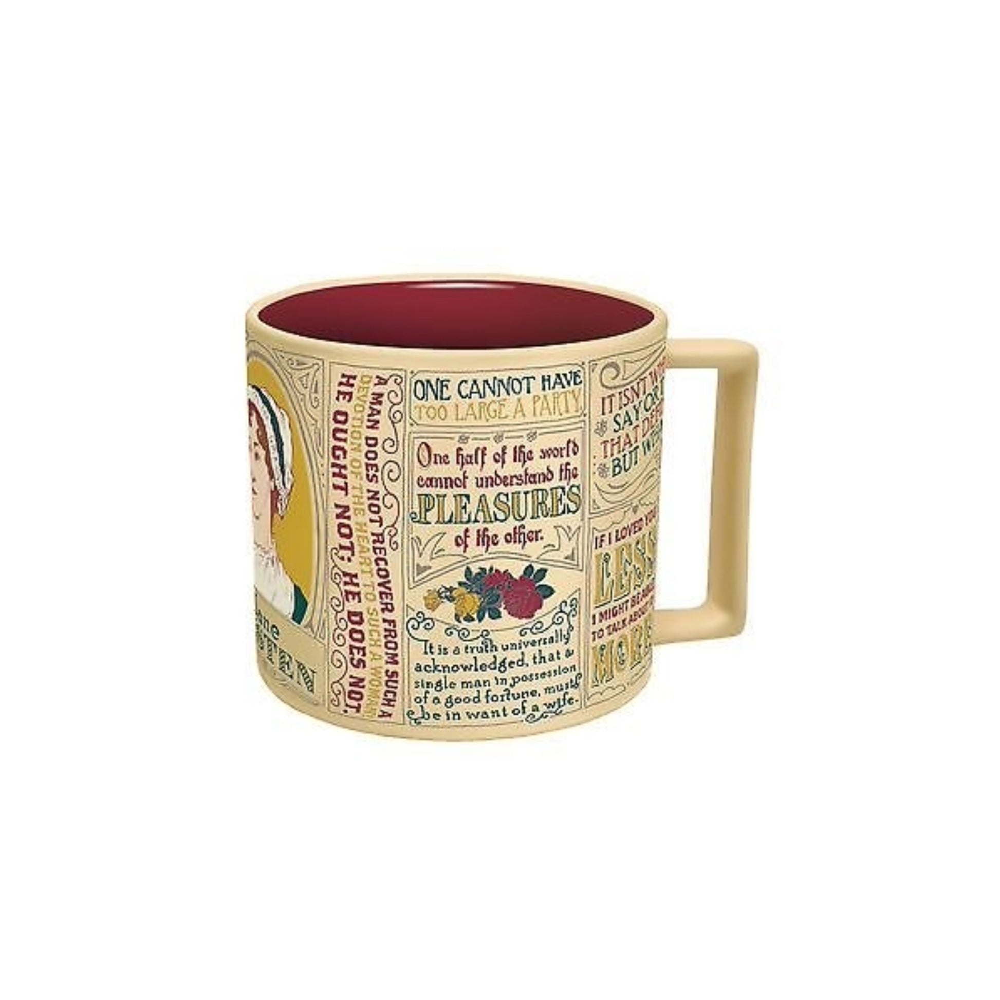 If you want to have fun while you drink coffee in the morning, you need this Jane Austen Mug, that contains various quotes from several of her novels. Bring the wit and wisdom of Jane Austen into your day with this conversation-starting mug. Whether for yourself or as a gift, it makes each coffee break a little brighter. This 16 oz Jane Austen Mug is sure to lighten up your mornings with its witty and wise quotes from her beloved novels. A great choice for yourself or as a gift, it's sure to bring a smile to anyone's face and have conversations started in no time. A mug that's fun, functional, and full of personality. Enjoy your hot beverage of choice with an inspiring reminder of the brilliance of Jane Austen. It'll bring a splash of joy to you, and your friends and family, every time you reach for it!