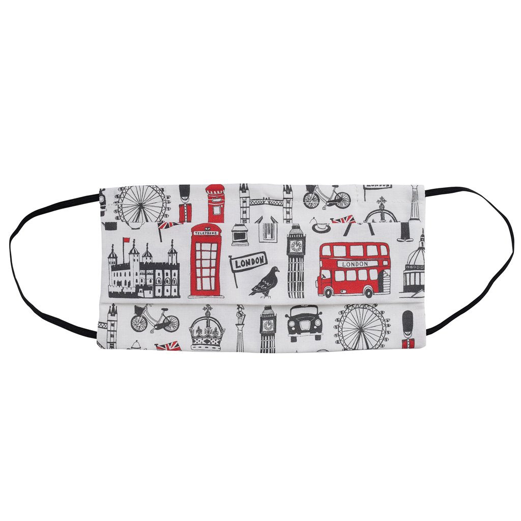 The beautifully illustrated Big Smoke fabric face mask features a charming view of London. Featuring cultural icons such as Big Ben, the London Eye, Queen's Guard, St Paul's Cathedral and a Beefeater; it serves as a fun reminder of everything you love about the Big Smoke.